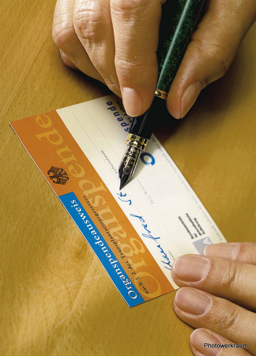 Unterschrift Organspenderausweis (Bild: Pressefoto BZgA)