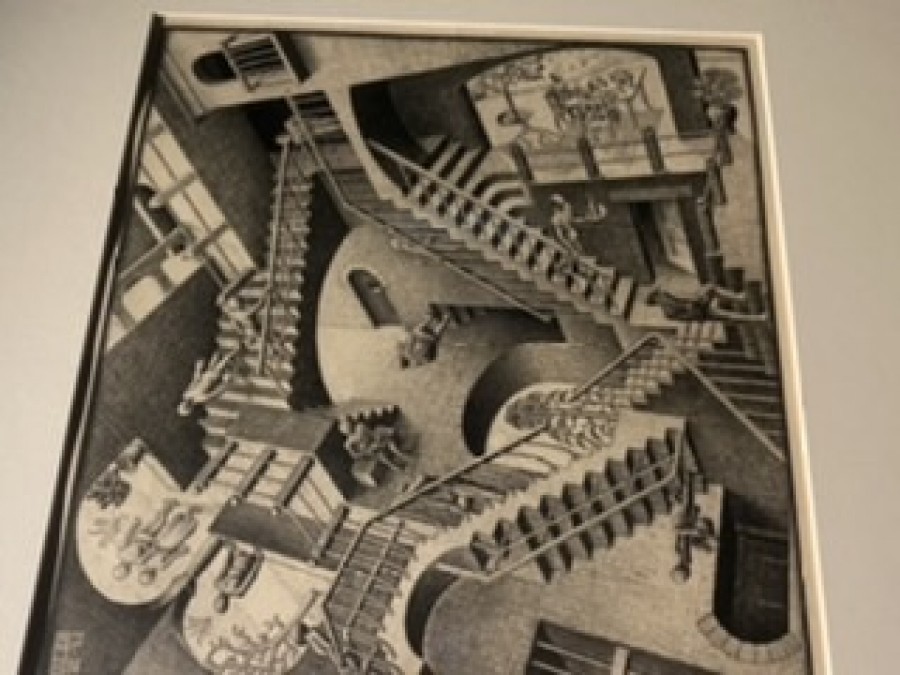 der Kunstgeschichte einzigartig ist. Die Ausstellung in Rom ist ein außergewöhnliches Ereignis, das dem Publikum nicht nur seine berühmtesten Meisterwerke, sondern auch zahlreiche noch nie gezeigte Werke präsentiert. Eine anthologische Ausstellung mit rund 300 Werken, darunter die inzwischen ikonische Hand mit Spiegelkugel (1935), Bond of Union (1956), Metamorphosis II (1939), Day and Night (1938), die berühmte Emblemata-Serie und viele andere. Nach mehreren Reisen nach Italien, die 1921 begannen, als er die Toskana, Umbrien und Ligurien, Kampanien und Kalabrien besuchte, kam Escher nach Rom, wo er zwölf Jahre lang, von 1923 bis 1935, in der Via Poerio 122 im Viertel Monteverde vecchio lebte. Die römische Periode hatte einen starken Einfluss auf sein gesamtes späteres Werk,